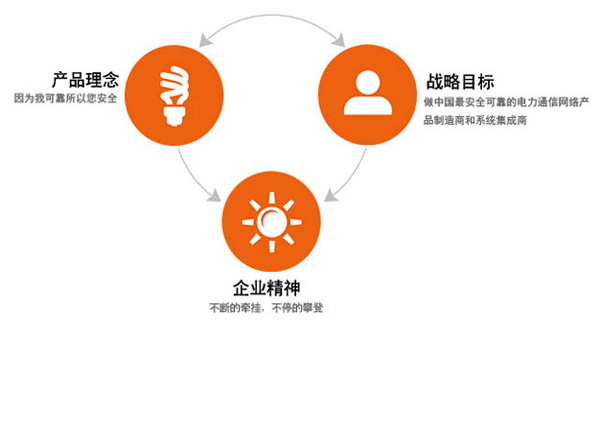 戰略目標 —— 做中國安全可靠的電力通信網絡產品制造商和系統集成商產品理念 —— 因為我可靠所以您安全